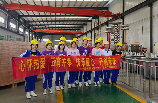 在公司領(lǐng)導(dǎo)和員工的大力支持和熱情接待下。公司領(lǐng)導(dǎo)親自給學(xué)生介紹了公司的有關(guān)情況,并安排了經(jīng)驗(yàn)豐富的生產(chǎn)與工藝副總帶領(lǐng)大家參觀和講解變壓器生產(chǎn)現(xiàn)場(chǎng)的相關(guān)設(shè)備、產(chǎn)品以及工藝等專業(yè)知識(shí)。